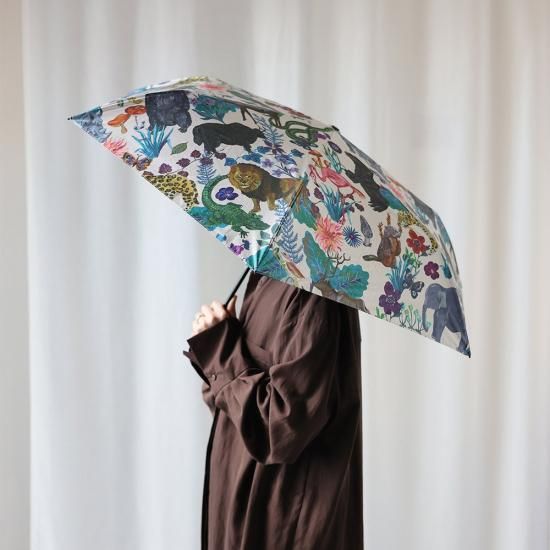 ナタリー・レテの独創的な世界観をギュッと詰めこんだ、鮮やかな色合いが目を惹く晴雨兼用の折りたたみ傘です。